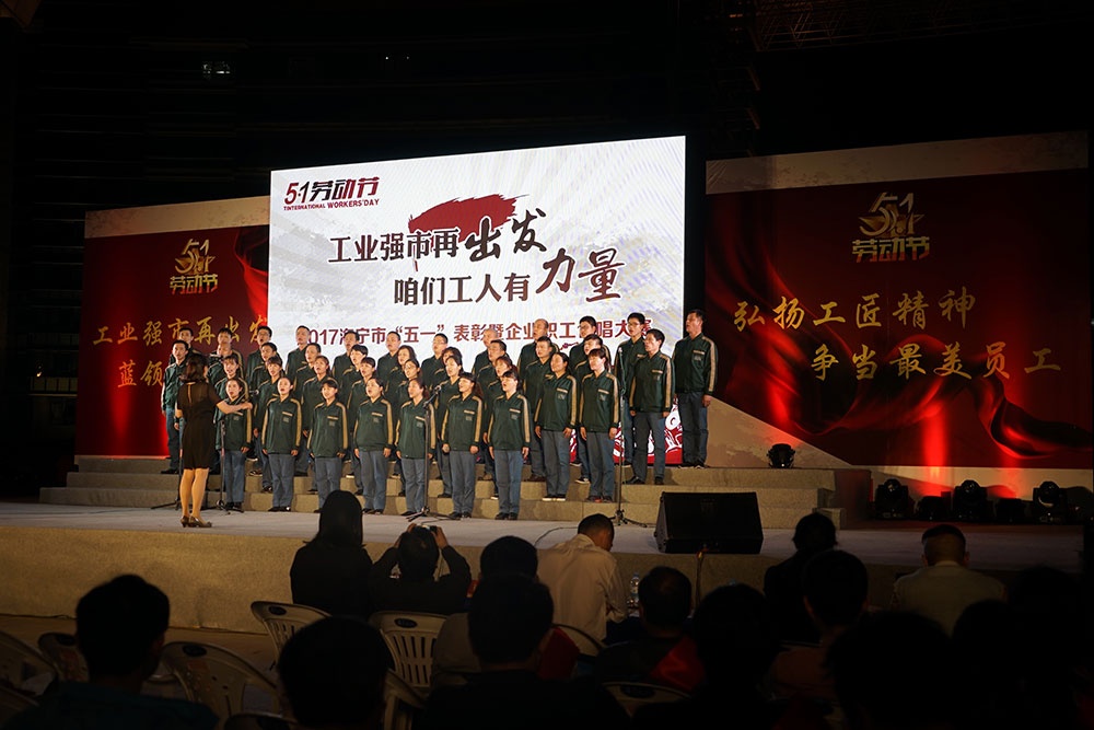 本集團合唱團作為全市報名參賽的11支企業隊伍之一,歌唱了《走向復興》、《四渡赤水出奇兵》,以其整齊劃一的隊形、豐富新穎的編排、洪亮和諧的音色、激情昂揚的風貌等贏得了評委和廣大觀眾,榮獲本次大賽的金獎,為公司爭得了榮譽。