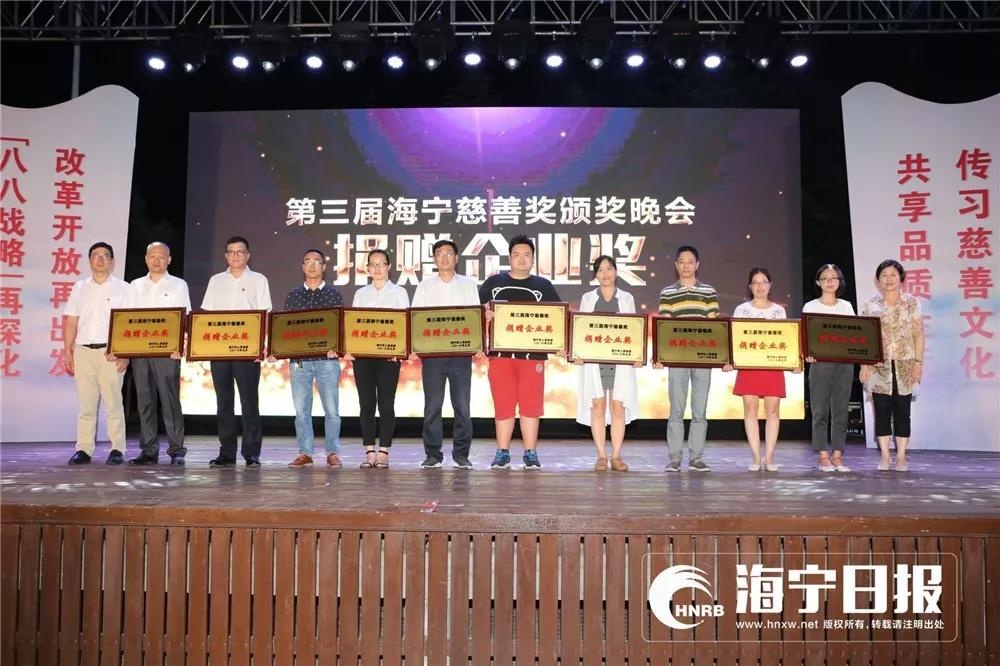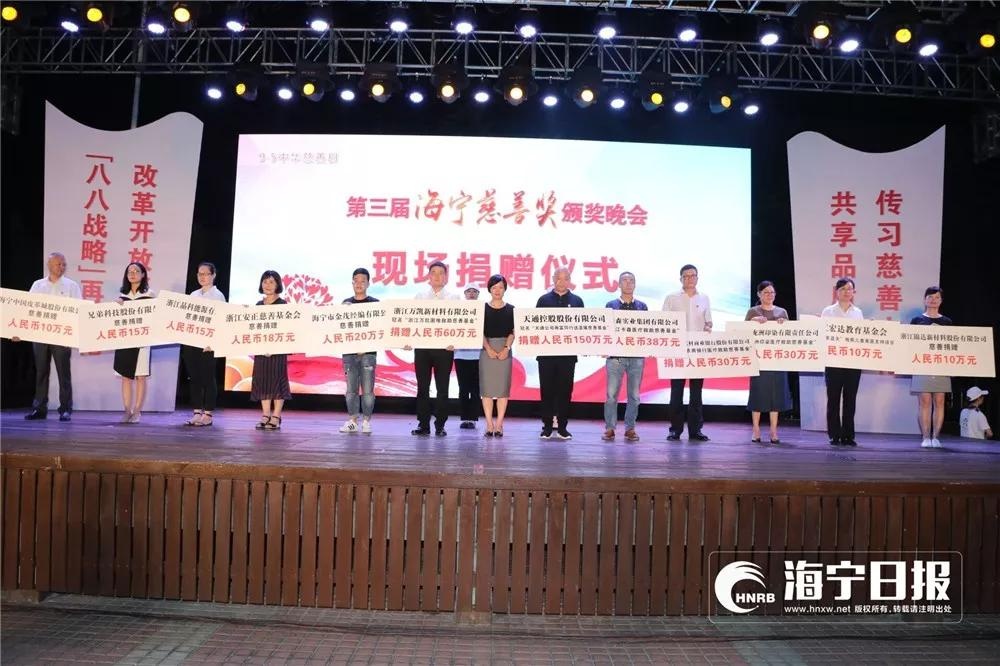 昨天晚上,由海寧市人民政府主辦的第三屆“海寧慈善獎”頒獎晚會在海寧文化館廣場盛大舉行,19個“捐贈企業獎”、10名“慈善之星”、10個“慈善組織獎”、10個“慈善項目獎”受到了表彰。本集團獲得了“捐贈企業獎”榮譽稱號。評選委員會給予“捐贈企業獎”的頒獎詞是:“如果說企業家身上要流淌著道德的血液,那么,企業就是社會責任的承擔者和社會良心的守望者。在海寧,有一大批企業,如萬川歸海,用創新涌起經濟的浪潮,用慈善重寫財富的價值。”