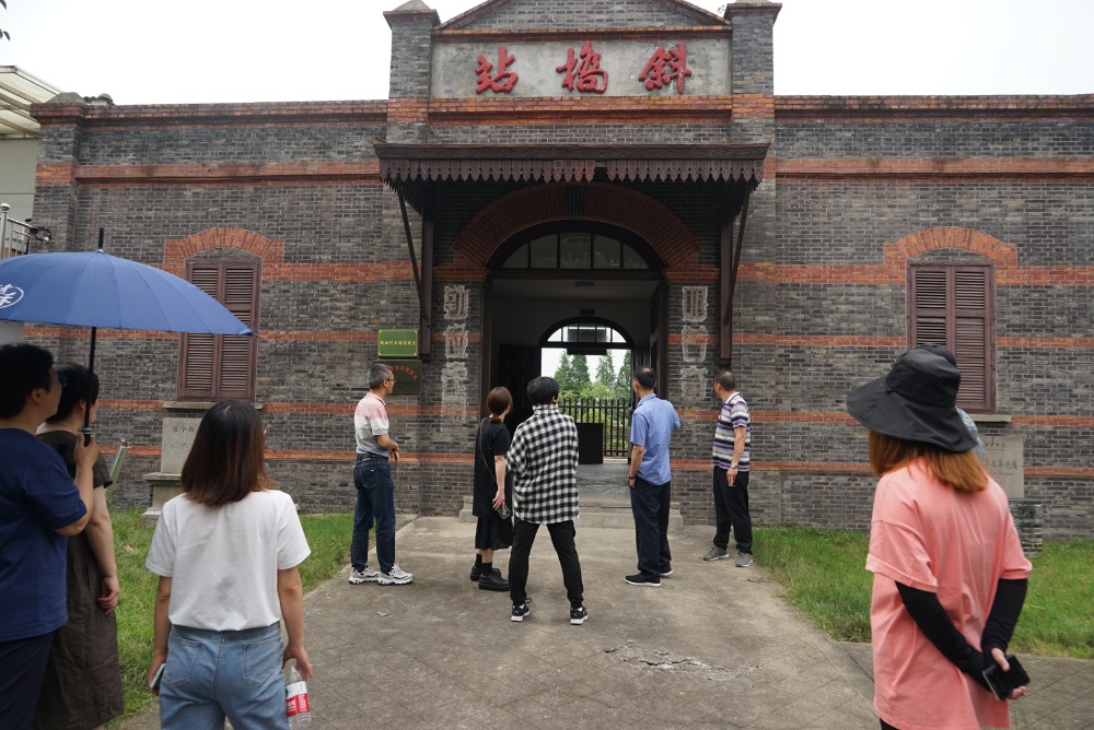 首先,全體黨員來(lái)到斜橋火車(chē)站參觀。斜橋火車(chē)站建于清宣統(tǒng)元年(1909年)8月,雖然從2004年開(kāi)始,斜橋站停辦了客運(yùn)業(yè)務(wù),但它是現(xiàn)今滬杭鐵路上保存最好的百年老站。而讓它更具有歷史意義的,是東西兩邊保存較為完整的碉堡炮樓,這里陳列著當(dāng)年日軍侵華的罪證。