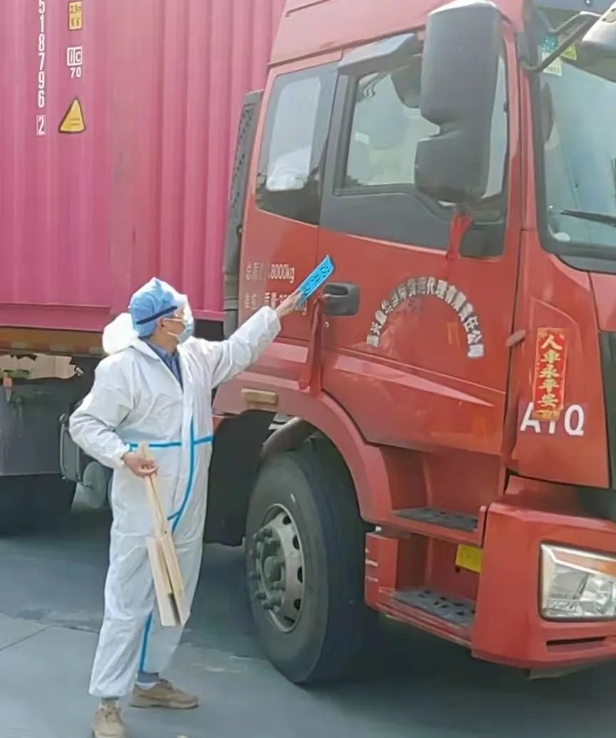 凡進入廠區的集裝箱及來廠裝貨車輛,都要求掃“嘉行碼”及行程碼查看(嘉興市外來返斜橋的進行登記),并測體溫登記,駕駛證、車牌號碼、身份證號碼、進廠時間、離廠時間等都要求填寫完整記錄。(由于貨車封閉管理所有駕駛員信息由單證部反饋管理部,由保安核對統一填寫登記,對嘉興市市外車輛進行車門封條張貼)