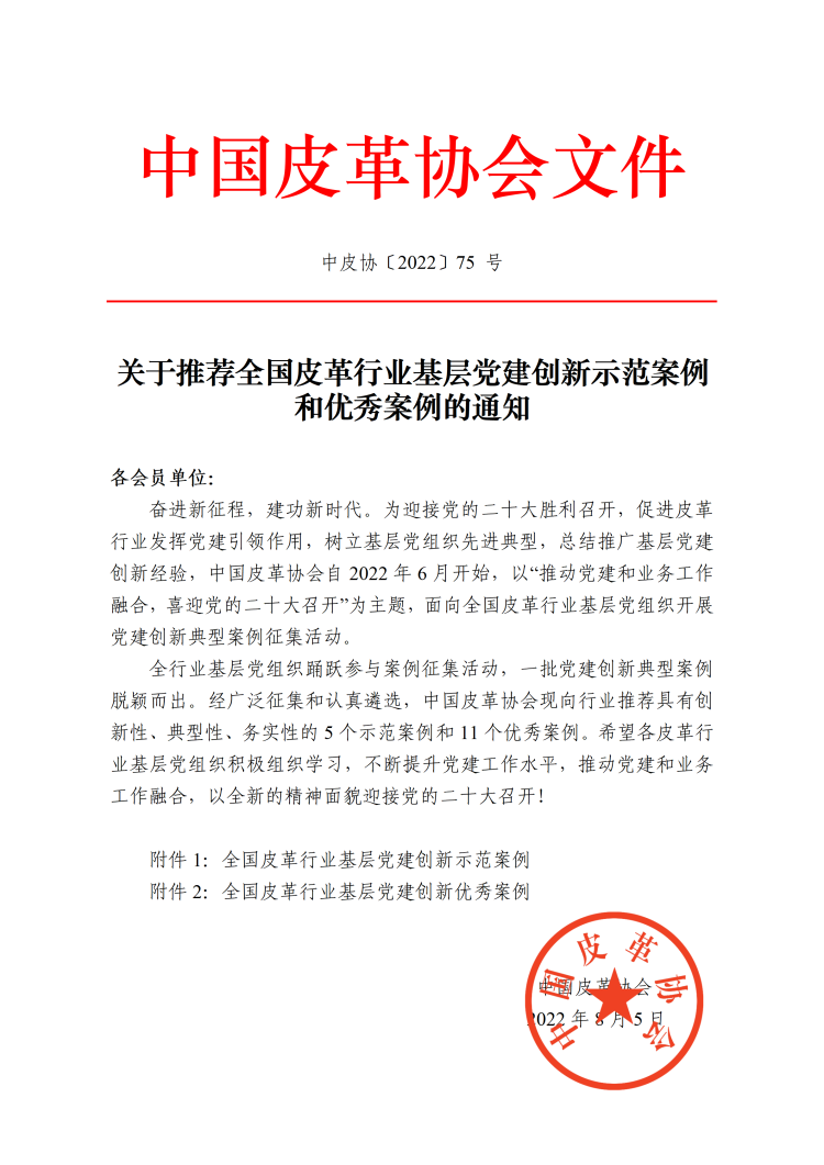 集團公司黨建工作被列為全國皮革行業基層黨建創新優秀案例