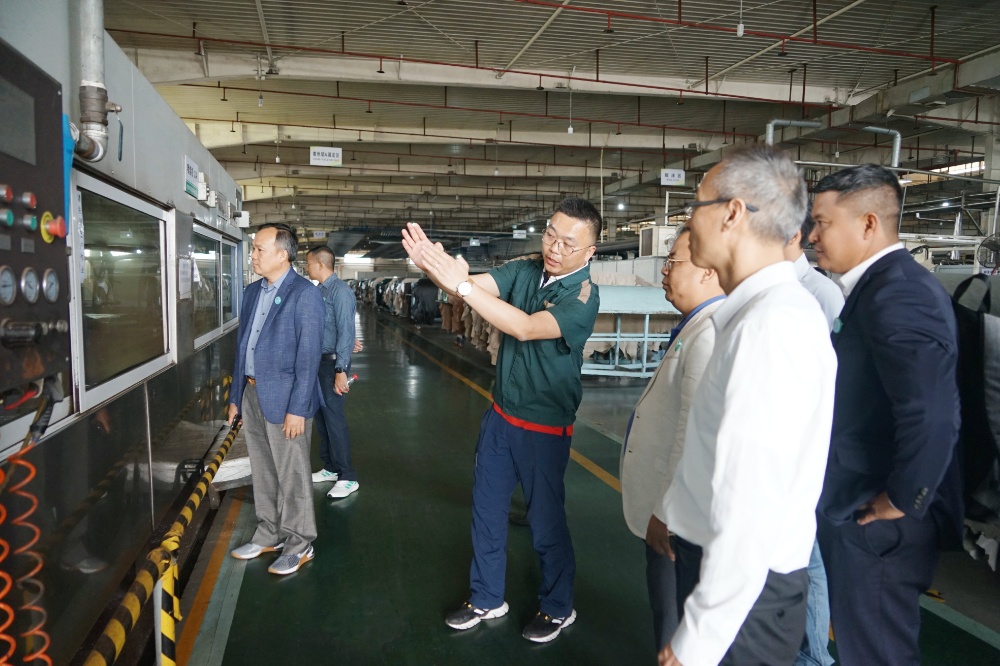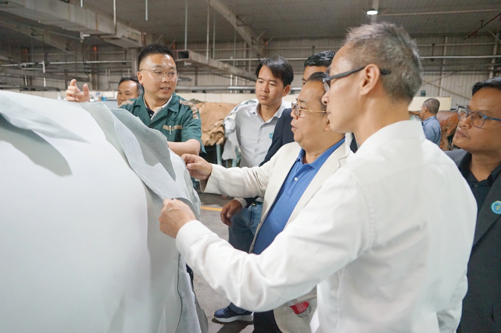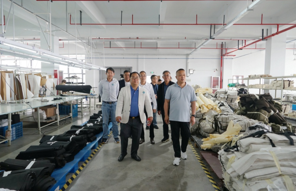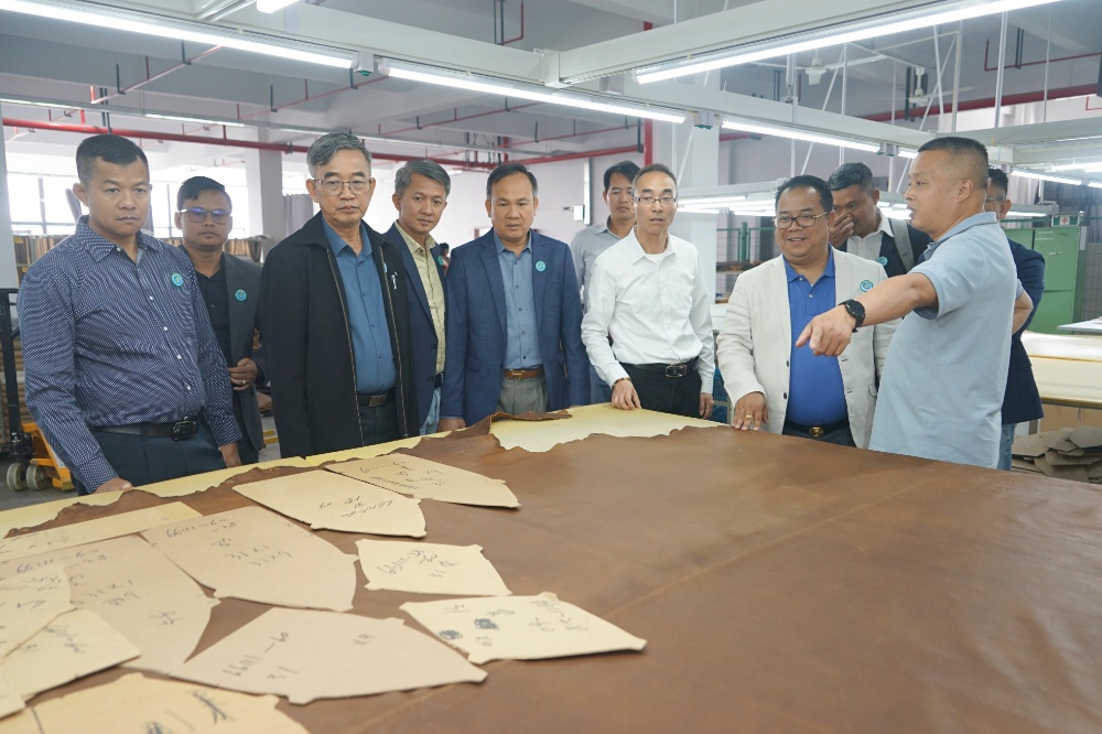 隨后,訪問團一行到斜橋工廠區進行參觀訪問。在漢林沙發有限公司,總經理朱建林帶大家參觀了沙發制造車間和成品車間;在制革事業部,副總經理謝柏煒帶領大家參觀了皮革制造車間。