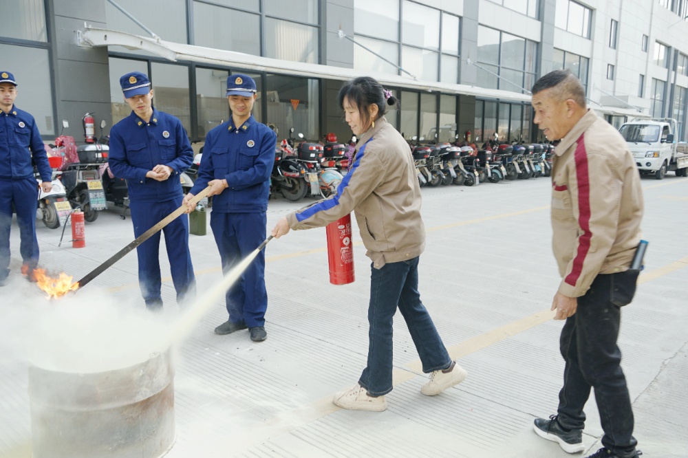 斜橋?qū)B毾绬T給大家講了遇到突發(fā)情況如何自救、如何逃生,如何使用滅火器等知識,并強調(diào)消防安全在于“防”,平時員工們要注意安全用電,切勿在車間和工位上吸煙和使用明火,防患在日常。