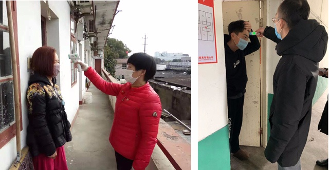 連日來,集團廣大黨員放棄春節休假,不顧疫情肆虐和個人安危,紛紛主動加入到抗擊疫情的第一線。疫情就是命令,防控就是責任,1月29日,集團高層幾位黨員領導率先沖在前,干在先,深夜走訪海寧區域內的各個子公司宿舍區,連夜制訂疫情防控措施,布置落實防控要求。當天下午總部工作群發動加強春節值守的指令,行政支部黨員第一時間搶著報名參加,組成的5個值班組20人,其中10人是黨員,占總部黨員總數的40%,遠高于支部黨員數與總部總人數的占比。5個值班組每天輪流奔赴各子公司宿舍區,檢查、核對、督促,每天行程100多公里,回總部后趕寫小組檢查工作報告,把工作做細夯實,第一時間將當天疫情檢查管控情況向集團防控群全體成員通報。