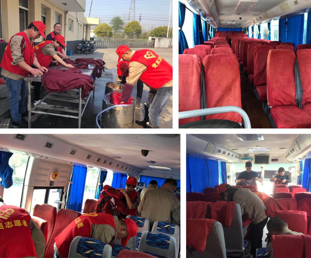 在大家一個上午團結認真的清洗下,134套座椅套清洗干凈,晾曬完成。下午三點,整潔而又鮮亮的座椅套“各就各位”被安裝上座位,班車車廂舊貌換新顏,同志們都感到很欣慰!他們以勞動為榮,樂在其中,能吃苦,作奉獻,體現了恒森支部的號召力和精神風貌。
